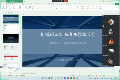 为进一步深化家校协同育人机制,凝聚育人共识,机电工程学院(精工书院)组织各班级于近日召开寒假线上家长会,辅导员、班主任与全体学生家长云端相聚,围绕学生成长与未来发展开展深入交流,共同凝聚家校育人合力,为学生寒假生活及长远发展指引方向、保驾护航。