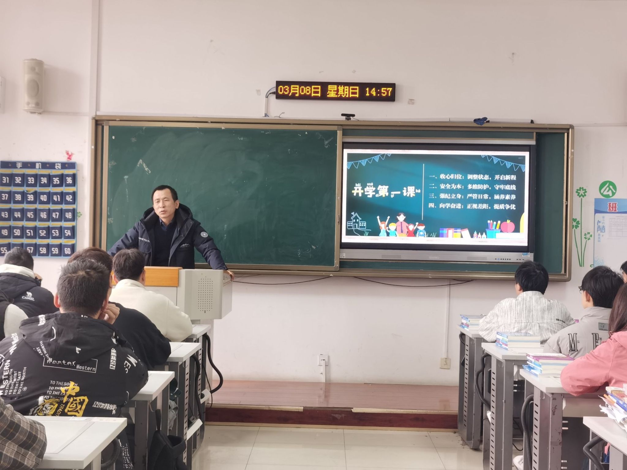 3月8日晚,学院“开学第一课”主题教育班会在各班级教室有序开展。党委组织部部长张伟敏、机电工程学院党总支书记宋永兴、机电工程学院副书记韩臻深入班级,与学生展开"面对面·心贴心"交流,细致询问返校情况、假期收获、学业规划及生活需求,勉励大家快速调整身心状态。张伟敏以"三问三思"(问假期收获、思成长方向;问学业规划、思行动路径;问生活需求、思解决之策)引导学生立足轨道交通行业发展趋势,制定"长短结合"的成长计划;宋永兴强调"三个转变":从假期松弛状态向学习专注状态转变,从被动接受向主动规划转变,从个人单打独斗向团队协作共进转变;韩臻以“五个聚焦”为引领,从聚焦目标规划、聚焦状态调整、聚焦习惯养成、聚焦团结协作、聚焦安全纪律五个方面,对同学们提出殷切期望,勉励大家快速从“假期模式”切换至“学习状态”,在互助共进中锤炼能力、实现全面成长。