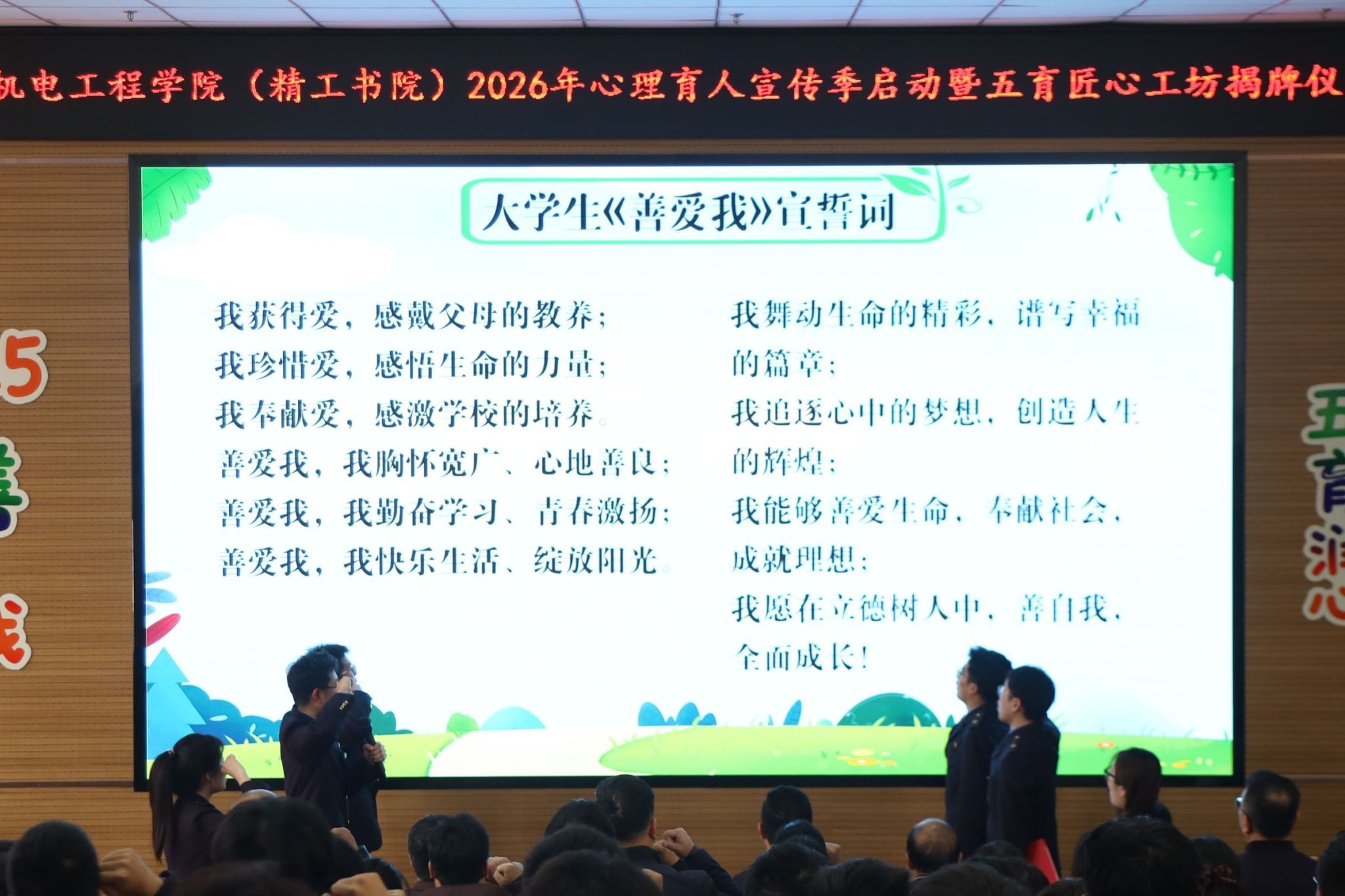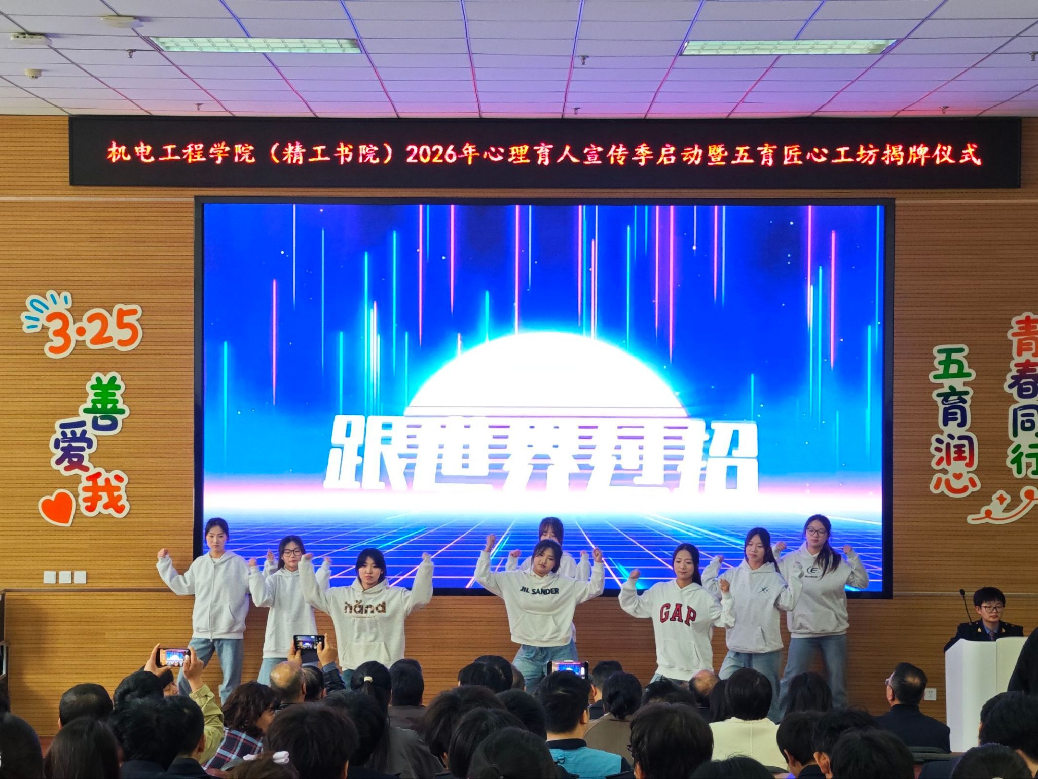 在全场师生的共同见证下,机电工程学院(精工书院)2026年心理育人宣传季正式启动。