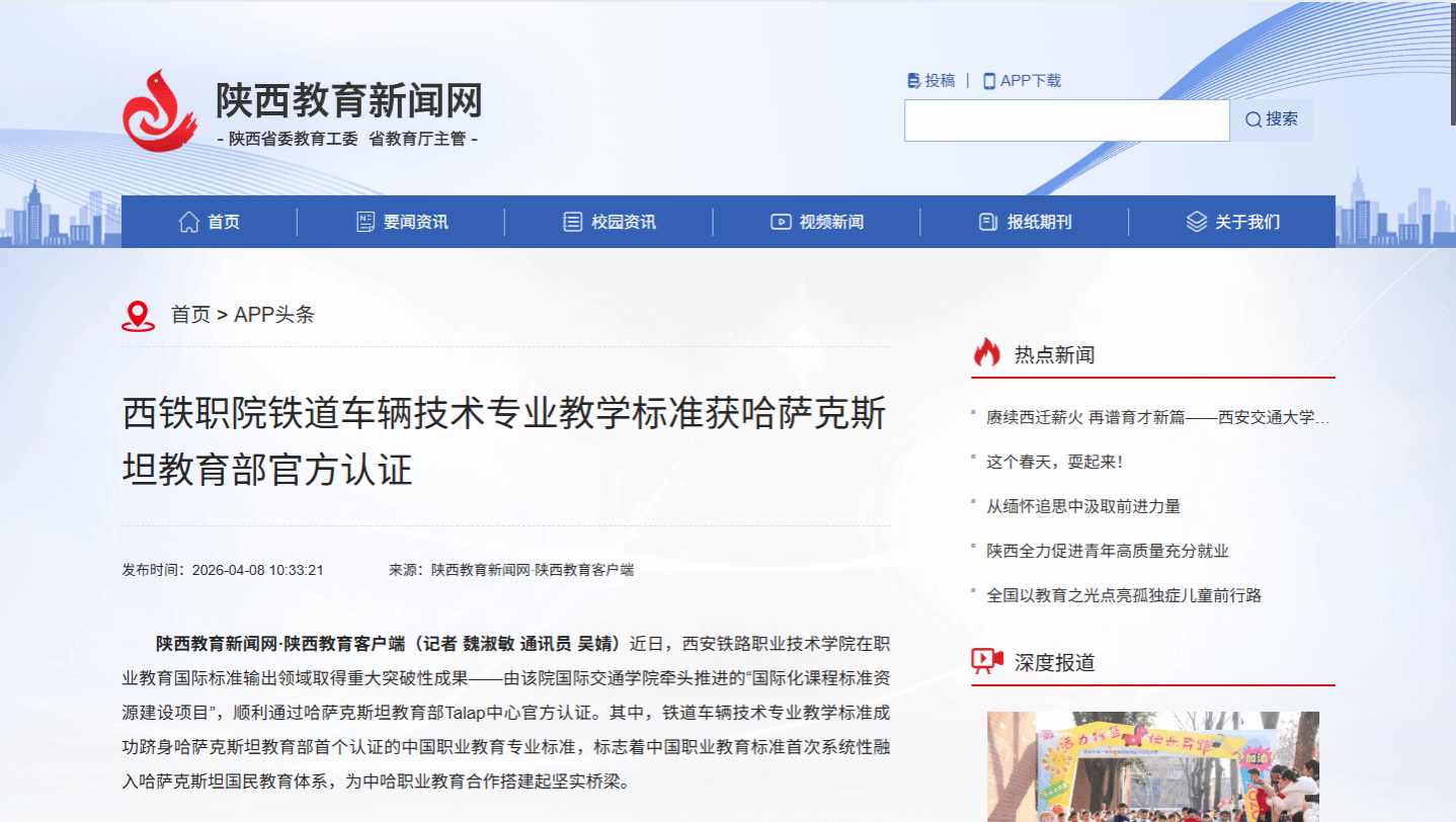 西铁职院铁道车辆技术专业教学标准获哈萨克斯坦教育部官方认证_APP头条_陕西教育新闻网